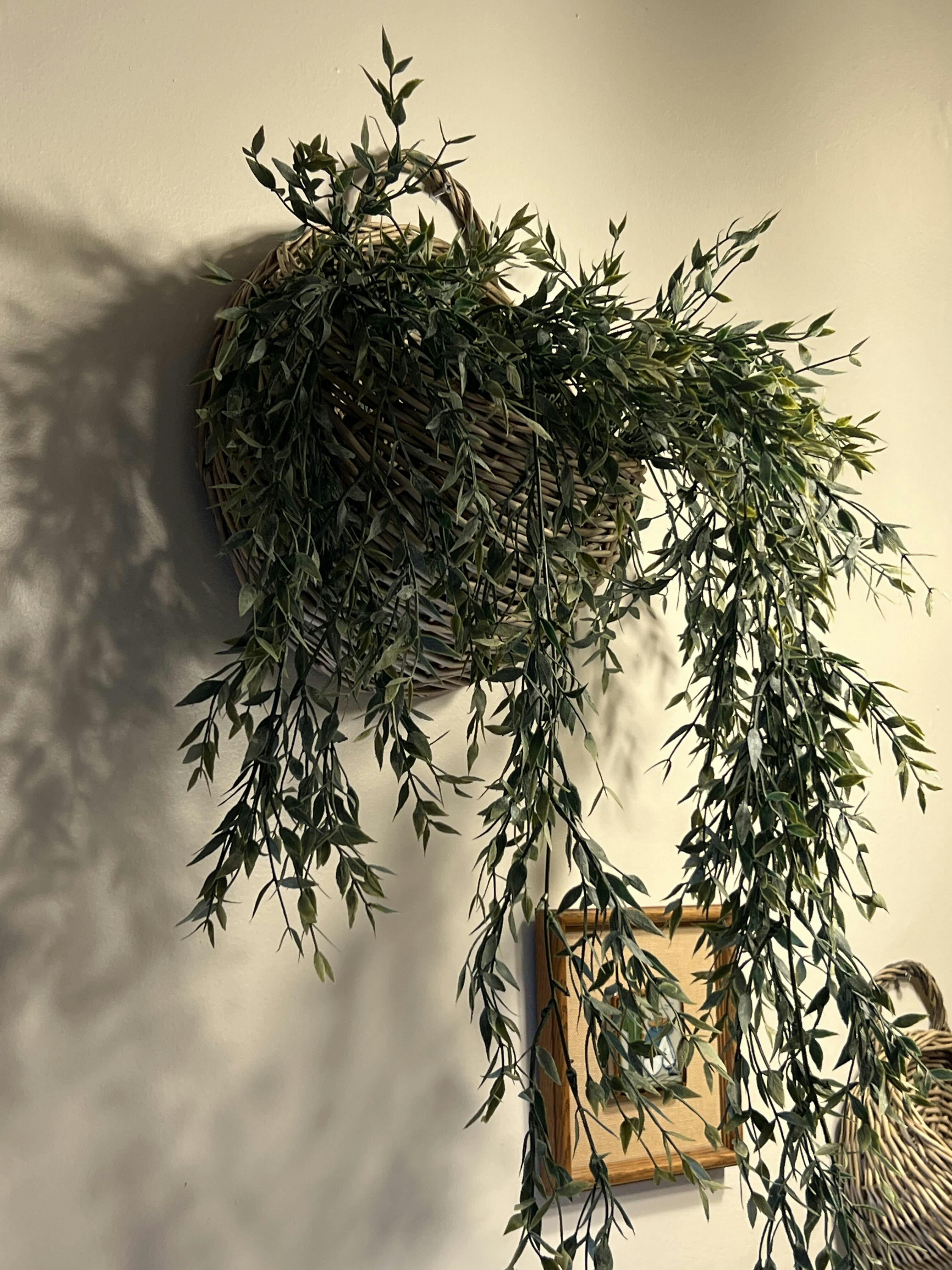 I bought a set of this greenery awhile back & love it so much that I just bought another set. It's the perfect addition to any basket, vase, etc where you need a nice drapey effect. The color & frosted accents would go with many decor styles.